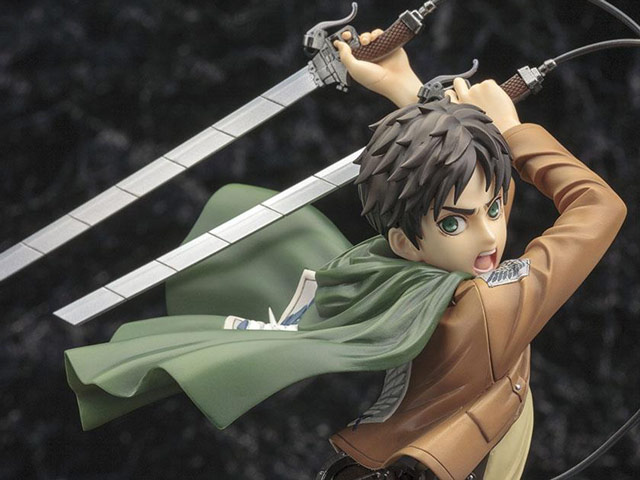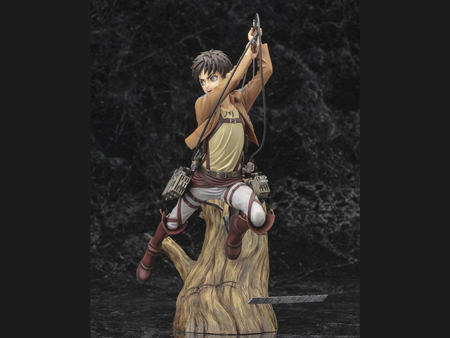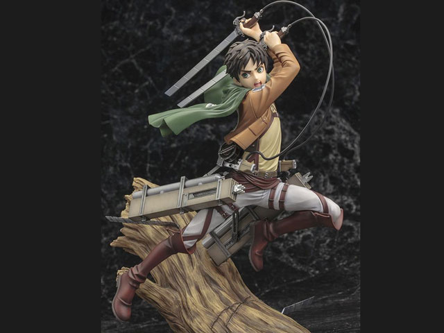 The Eren Yeager 1/8 scale Pre-Painted Figure sculpted by Shin Tanabe is a popular collectible from Kotobukiya’s ARTFX J line, known for its dynamic forest battle pose with detailed 3D Maneuver Gear, bark-textured tree base, and removable Survey Corps mantle, capturing Eren’s determined spirit from Attack on Titan.