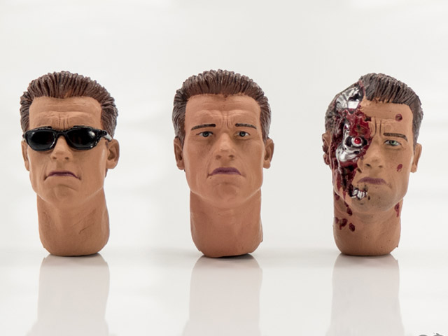 Includes 3 interchangeable heads (regular, sunglasses and battle-damaged)